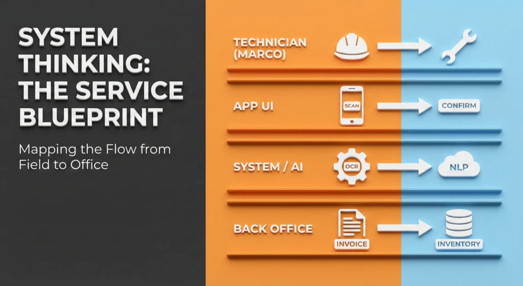 I didn’t just design application screens; I mapped the entire Service Blueprint to visualize how data flows from a ‘Broken AC Unit/ to a ‘Paid Invoice’, identifying and eliminating bottlenecks.