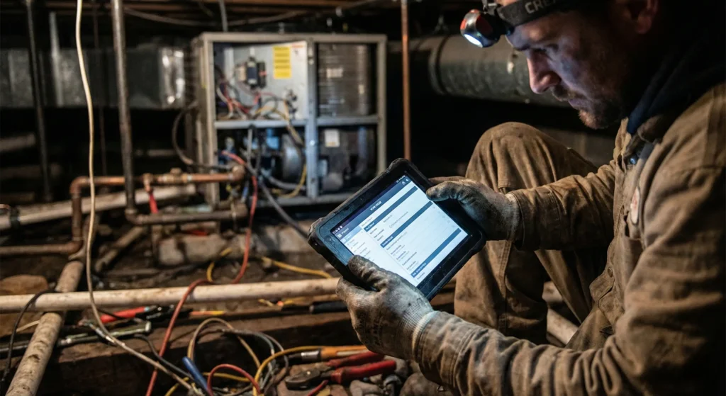 - Voice-to-Data Reporting: Leveraging Natural Language Processing (NLP) to bypass typing entirely. Marco dictates: “Replaced 5-ton compressor, tested for leaks with nitrogen, system holding pressure.” The app parses this into a structured, standardized service report for billing.