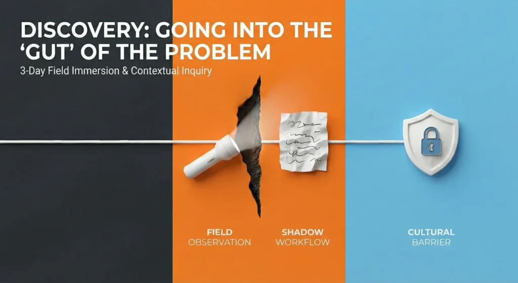 - The ‘Shadow’ Workflow: Techs were actively bypassing existing digital tools. They used ‘cheat sheets’ (scrap paper with scribbled serial numbers) during the day, forcing them to re-type data into clunky legacy systems at the end of a 10-hour shift, the primary friction point causing billing delays.