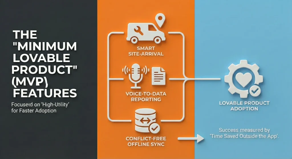 We focused on three ‘High-Utility’ features for the MVP, defining success not by engagement time, but by how quickly the tech could leave the app.