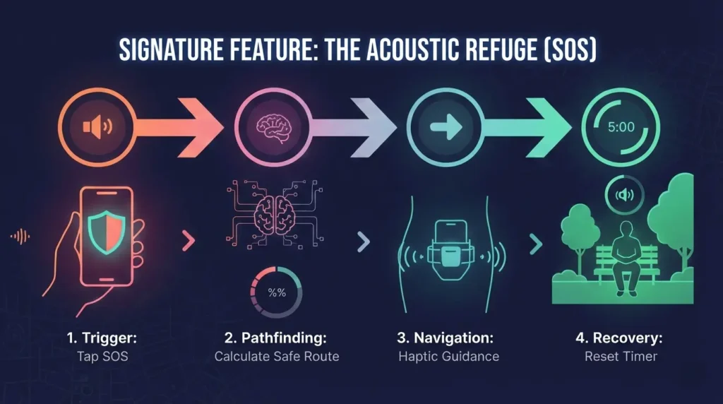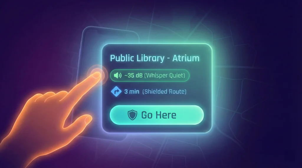 3. Pathfinding: The app generates a ‘Quiet Path’ to the nearest verified refuge (e.g., a library or thick-walled hotel lobby).