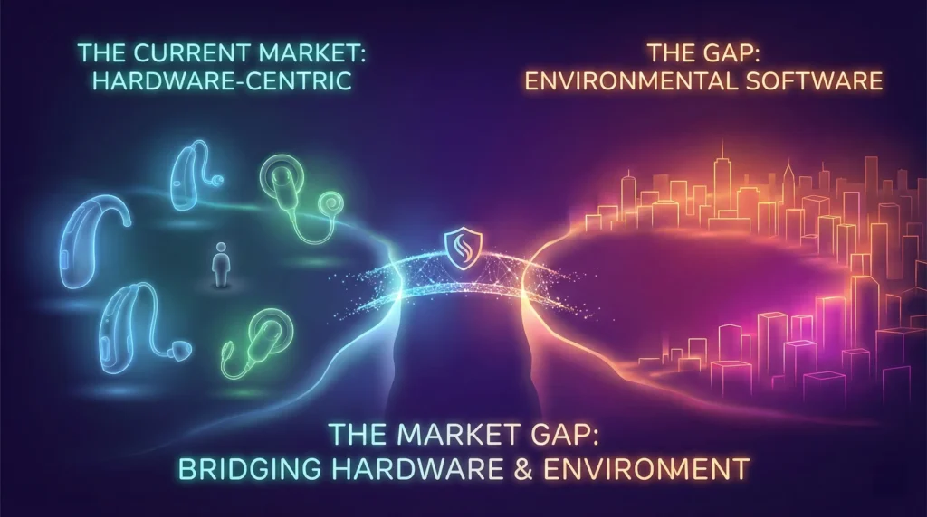 Current assistive technology focuses on the ear (hardware). SoundScout focuses on the environment (software). We identified a massive opportunity to provide ‘Acoustic Equity’ in urban navigation.