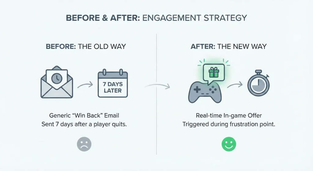 • The Intervention: Real-time personalized bonuses or ‘luck-adjustment’ incentives sent before the player left the session.