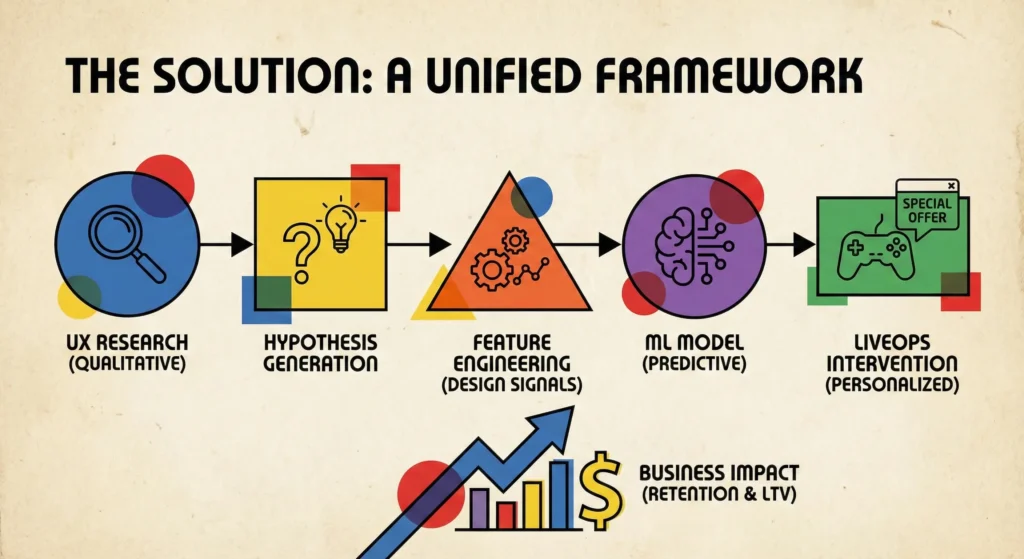 We validated this framework across different game genres, proving that UX context significantly improves model performance and business outcomes.